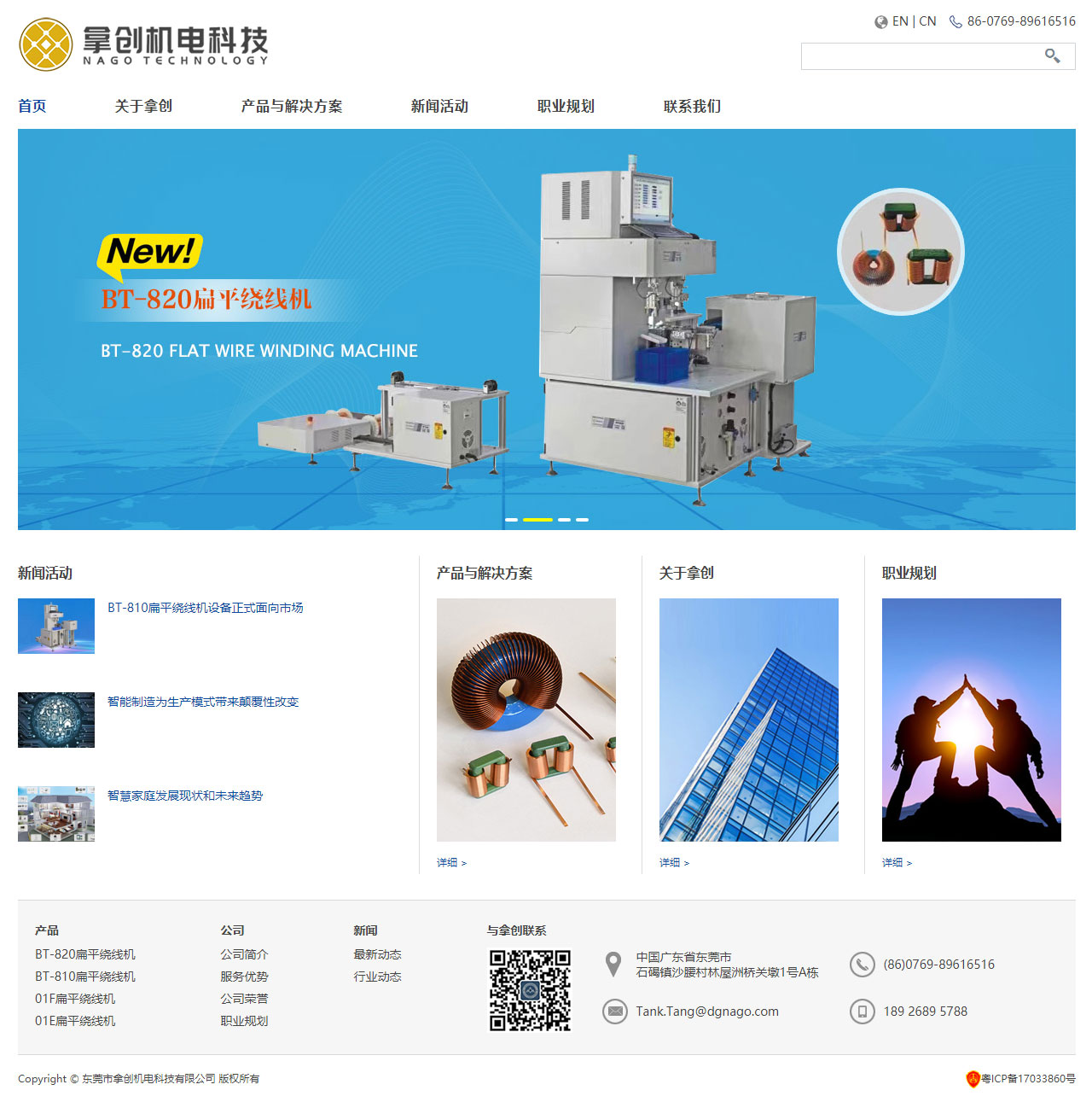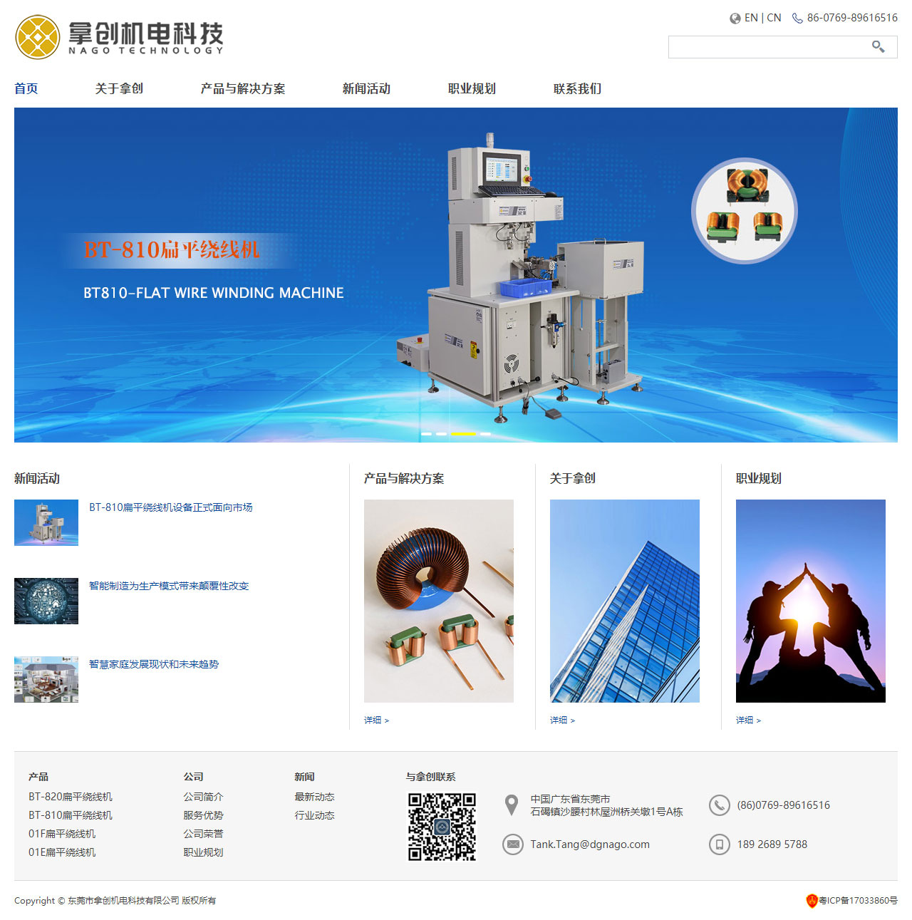 拿創(NAGO)以多年的機械自動化專業知識為基礎,開發、制造標準和定制自動化整體解決方案,尤其專注于扁平線方形線圈、扁平線環形線圈、大功率扁平線線圈、磁芯閉合式冷擠壓繞線業務。