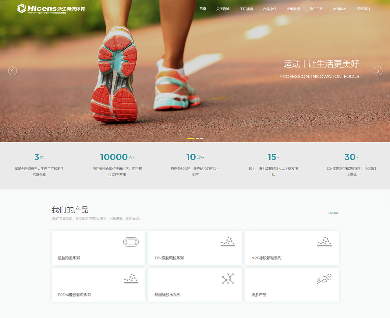 Hicens海誠,是一家集研發(fā)、生產(chǎn)、銷售、工程、售后服務(wù)為一體的彈性運動地面、休閑綠道場地材料智造商,現(xiàn)有廠房面積上2萬平方米,通過ISO9001質(zhì)量管理體系、ISO14001環(huán)境管理體系、ISO45001職業(yè)健康安全管理體系認證,日產(chǎn)量300噸,年產(chǎn)能10萬噸。