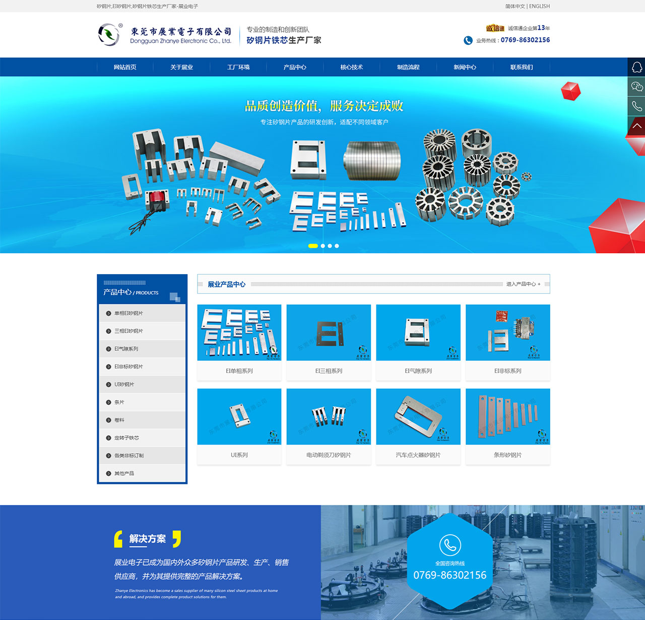 東莞市展業電子有限公司成立于1999年,地處東莞市電子產業名鎮-石碣鎮,是一家專業從事矽鋼片產品研發銷售于一體的創新型企業。主營EI、UI、UU、EE、F、條型矽鋼片、環形鐵芯、定轉子鐵芯;