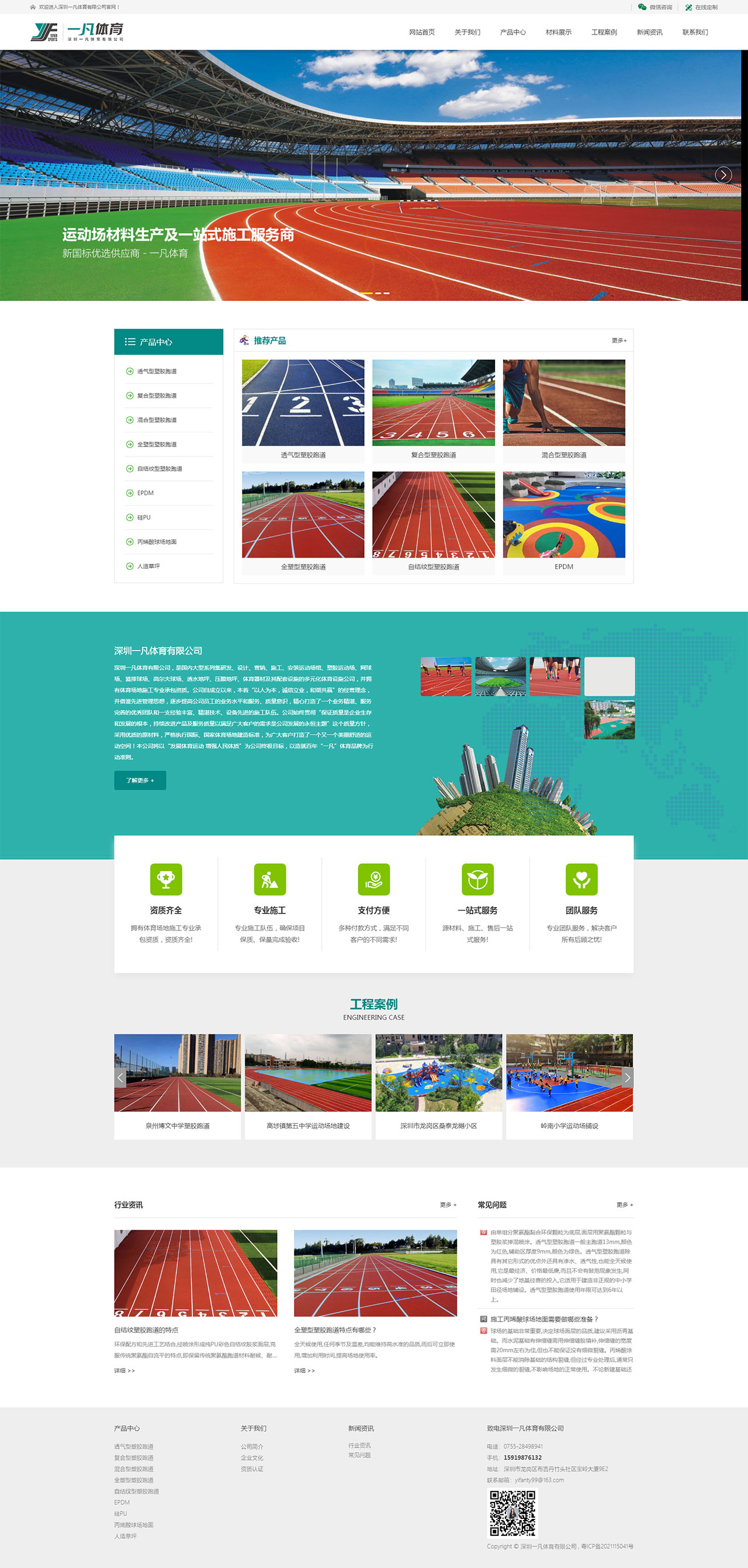 深圳一凡體育有限公司,是國內大型系列集研發、設計、營銷、施工、安裝運動場館、塑膠運動場、網球場、籃排球場、高爾夫球場、透水地坪、壓膜地坪、體育器材及其配套設施的多元化體育設施公司,并擁有體育場地施工專業承包資質。
