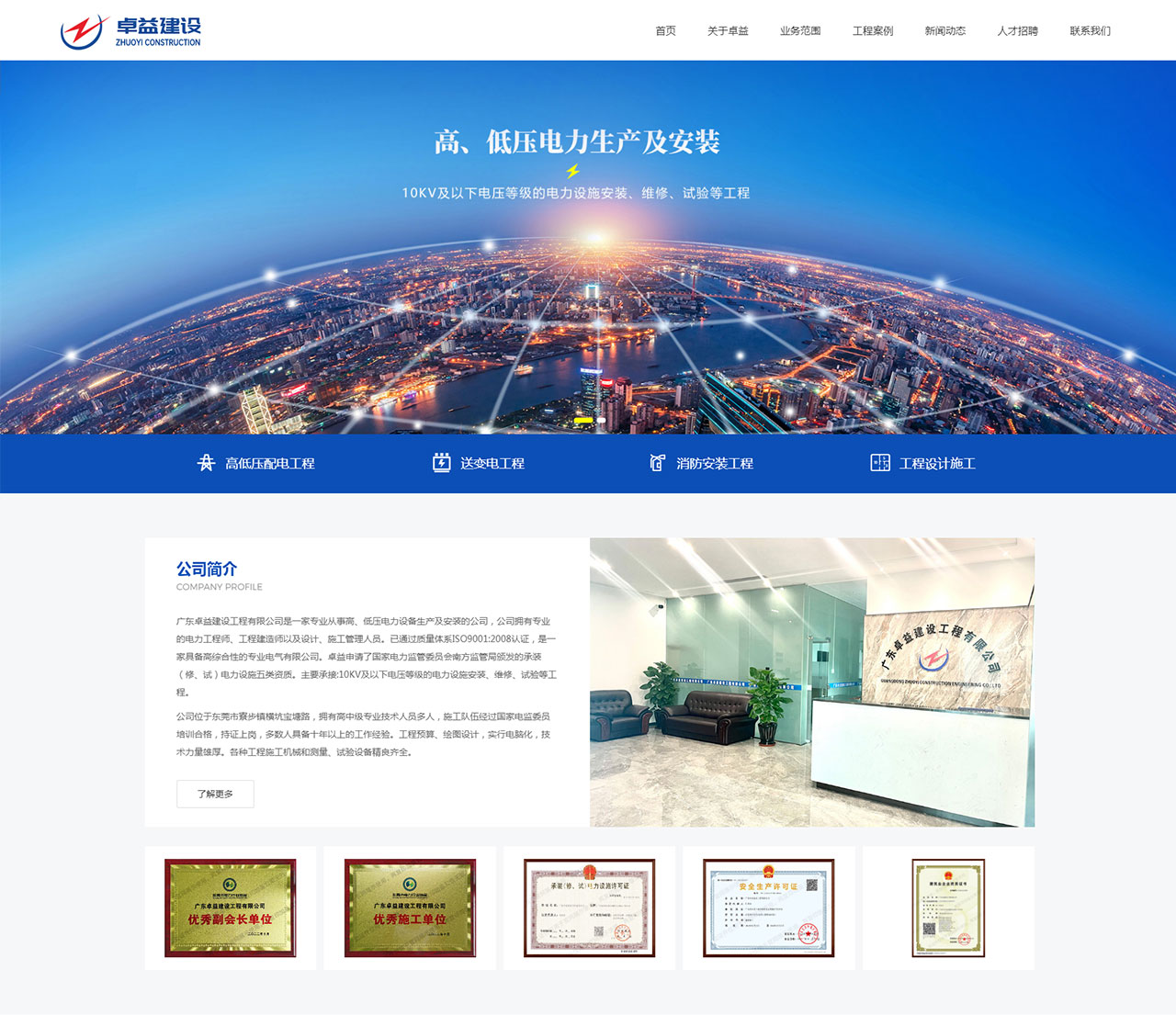 廣東卓益建設工程有限公司是一家專業(yè)從事高、低壓電力設備生產(chǎn)及安裝的公司,公司擁有專業(yè)的電力工程師、工程建造師以及設計、施工管理人員。已通過質量體系 1SO9001 : 2008 認證,是一家具備高綜合性的專業(yè)電氣有限公司。卓益申取了國家電力監(jiān)管委員會南方監(jiān)管局頒發(fā)的承裝(修、試)電力設施五類資質。主要承接:10KV及以下電壓等級的電力設施安裝、維修、試驗等工程。
