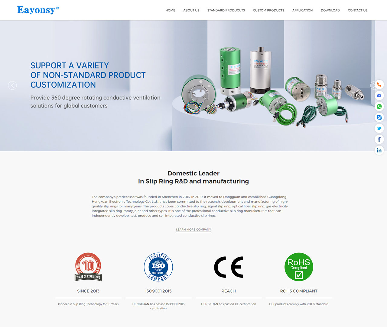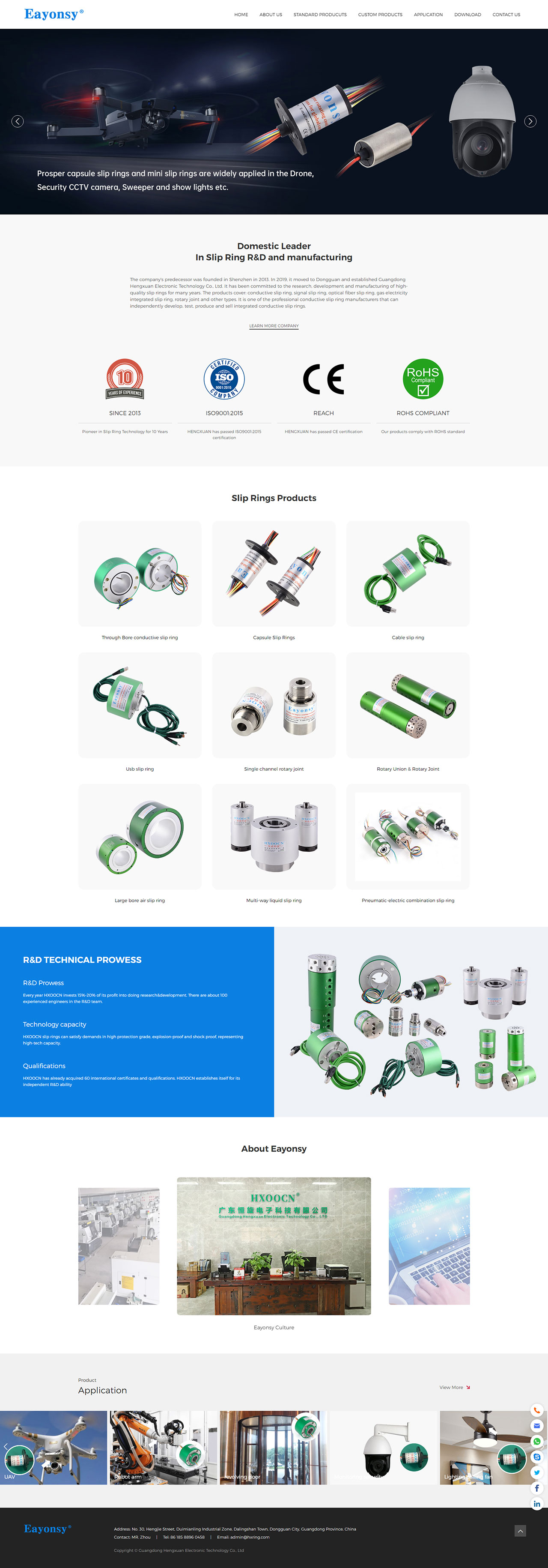 服務內容:外貿網站建設、英文網站建設 Guangdong Hengxuan Electronic Technology Co., Ltd. was established in Shenzhen in 2013 and moved to Dongguan in 2019. It is a global slip ring manufacturing enterprise integrating research and development, design, production and sales. Eayonsy is its own brand.