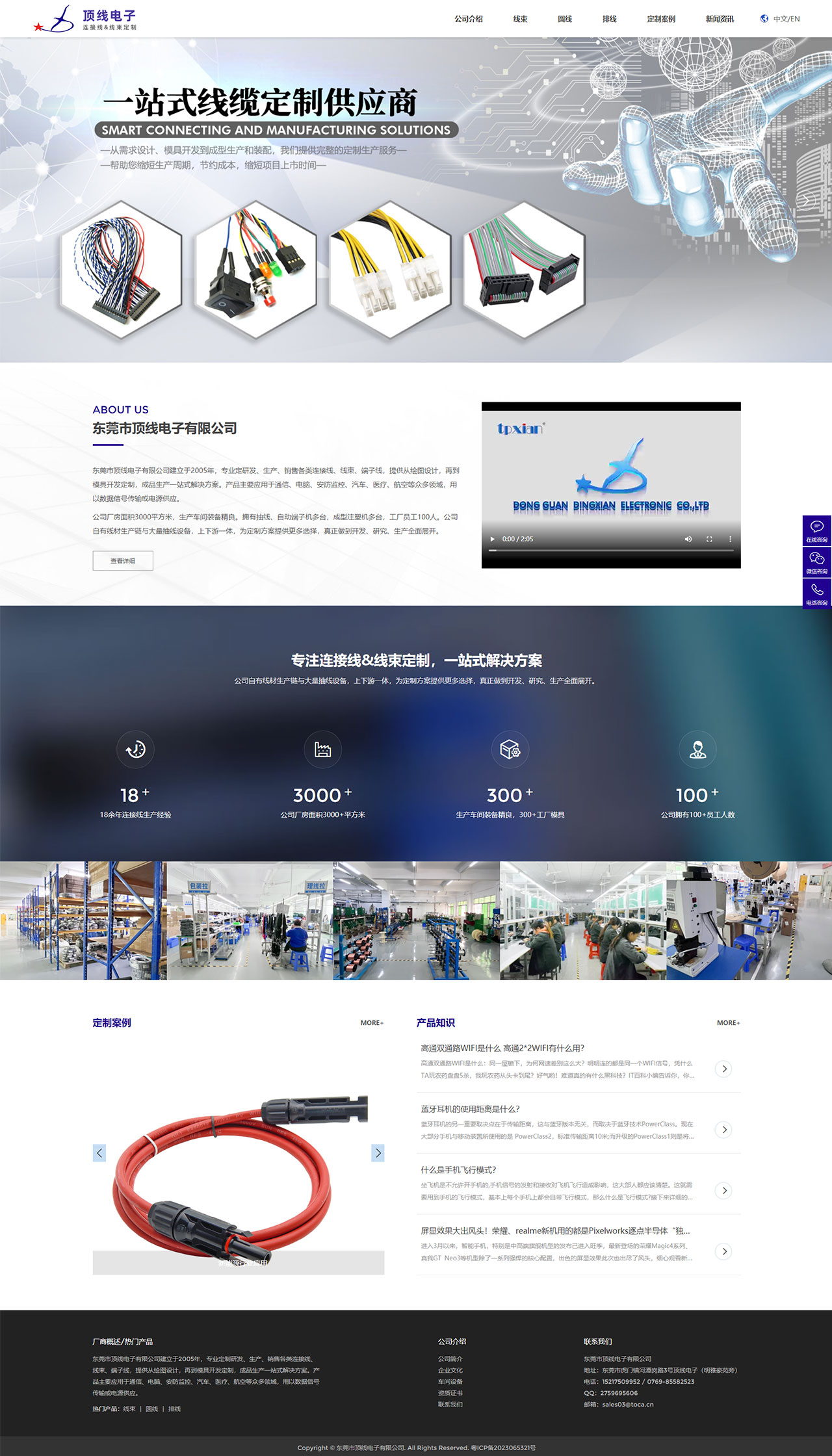 東莞市頂線電子有限公司建立于2005年,專業定制研發、生產、銷售各類連接線、線束、端子線,提供從繪圖設計,再到模具開發定制,成品生產一站式解決方案。產品主要應用于通信、電腦、安防監控、汽車、醫療、航空等眾多領域,用以數據信號傳輸或電源供應。