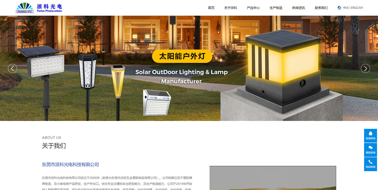 東莞市派科光電科技有限公司成立于2006年(前身為東莞市杰和五金塑膠制品有限公司)。公司前期立足于塑膠模具制造,及小家電類產品研發,生產并出口。依托專業過硬的自主研發能力,及生產制造能力,公司于2019年開始進入新能源應用市場,成為專業的光伏系統連接組件生產商。產品涵蓋:光伏連接器,光伏線纜,光伏線束,轉接頭,及光伏連接組件等產品的實體工廠, 以及太陽能戶外燈,庭院燈,太陽能草坪燈等產品。